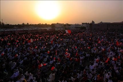 آلاف المتظاهرين البحرينيين في تجمع للوفاق في المنامة أمس (أ ب )