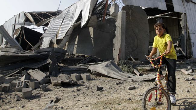 This file photo shows a Palestinian boy at the site of an Israeli airstrike in Gaza.