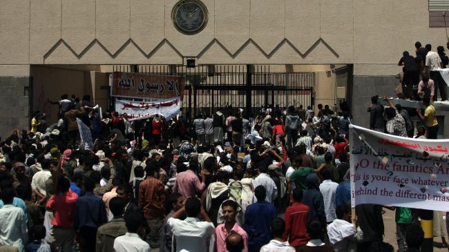 Yemenis storm US embassy in Sana’a, one killed, dozens wounded