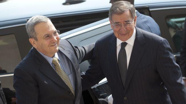 لئون پانتا وزیر دفاع امریکا (راست)، ایهود باراک وزیر نیروهای مسلح رژیم اسرائیل (چپ)، واشنگتن دی سی شنبه 30 اردیبهشت 1391 ساعت 1:22