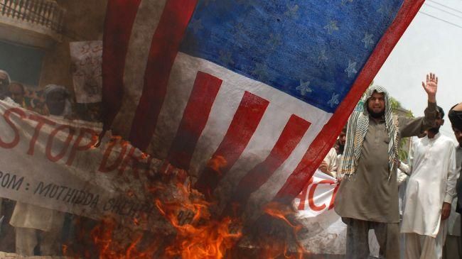 معترضان پاکستانی پرچم امریکا را به آتش می کشند