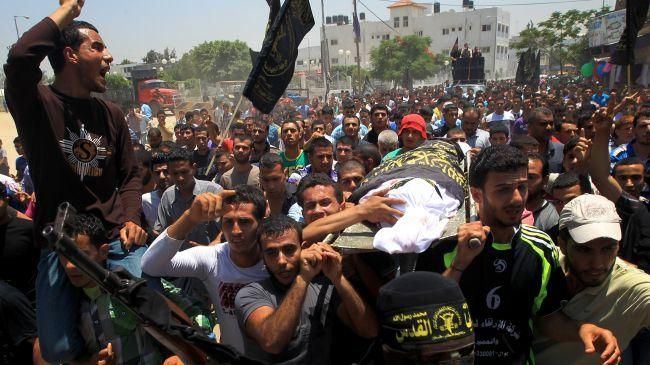 تشییع جنازه یک فلسطینی که بر اثر حملات هوایی رژیم اسرائیل کشته شد. 18 ژوئن 2012 چهارشنبه 31 خرداد 1391 ساعت 0:37