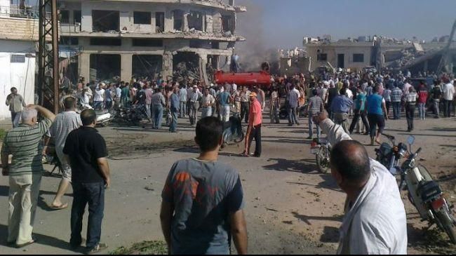 اجتماع مردم سوریه در نزدیکی محل انفجار بمب