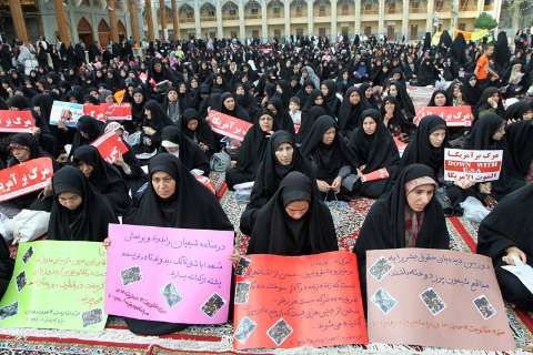 تجمع مردم شیراز در حرم شاهچراغ برای حمایت از مسلمانان میانمار