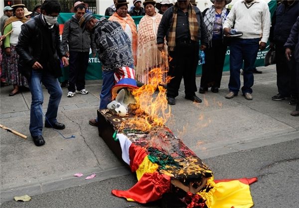 آتش زدن پرچم فرانسه ایتالیا و آمریکا در بولیوی